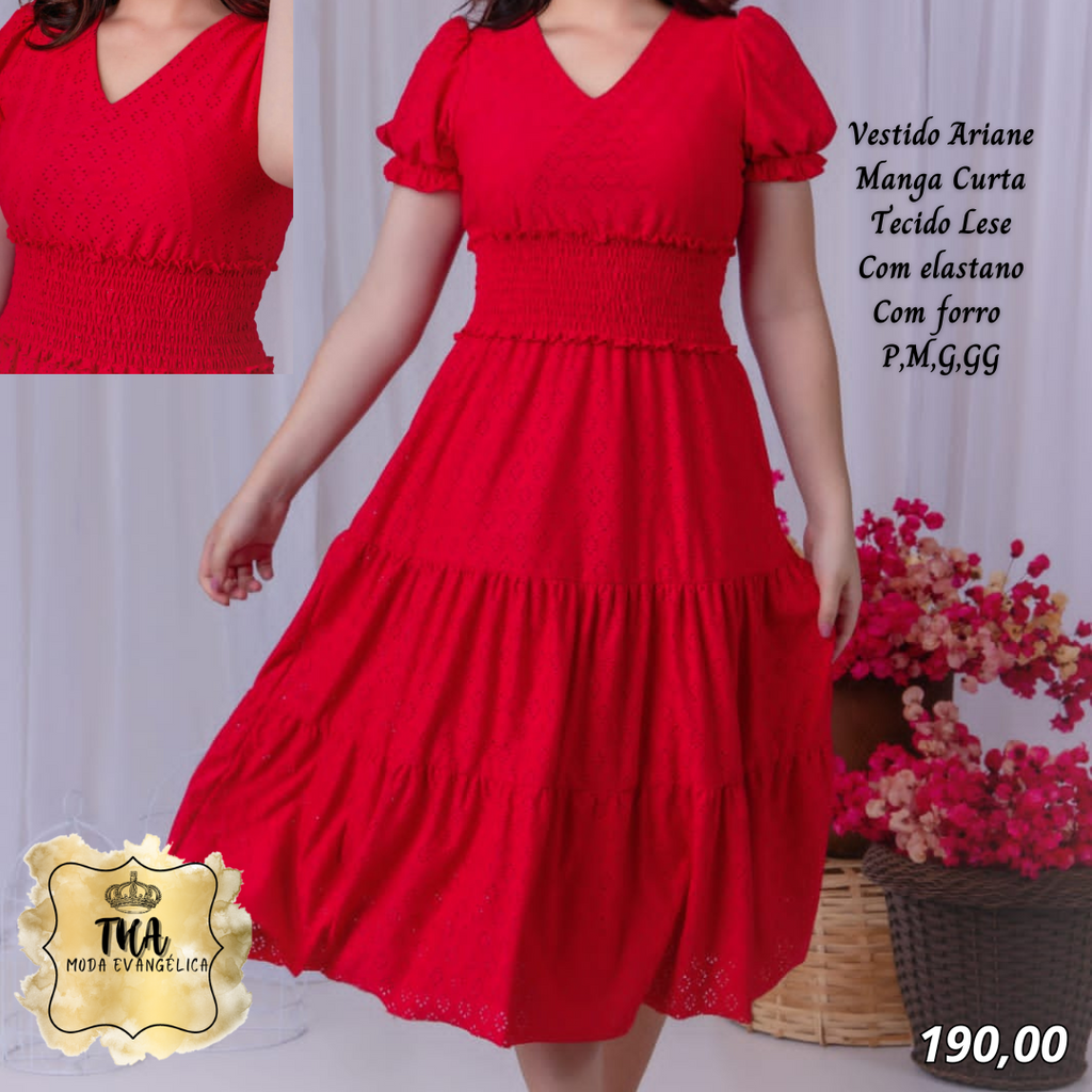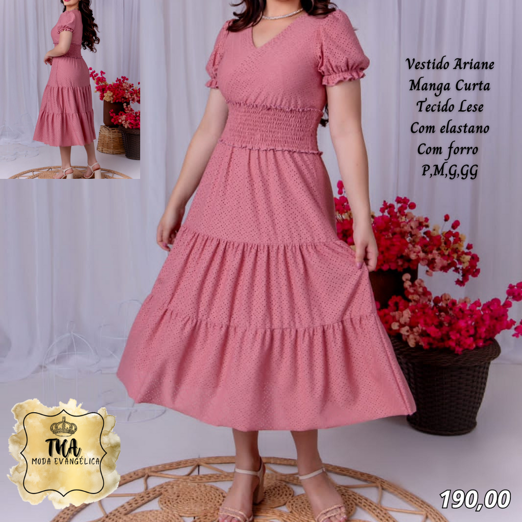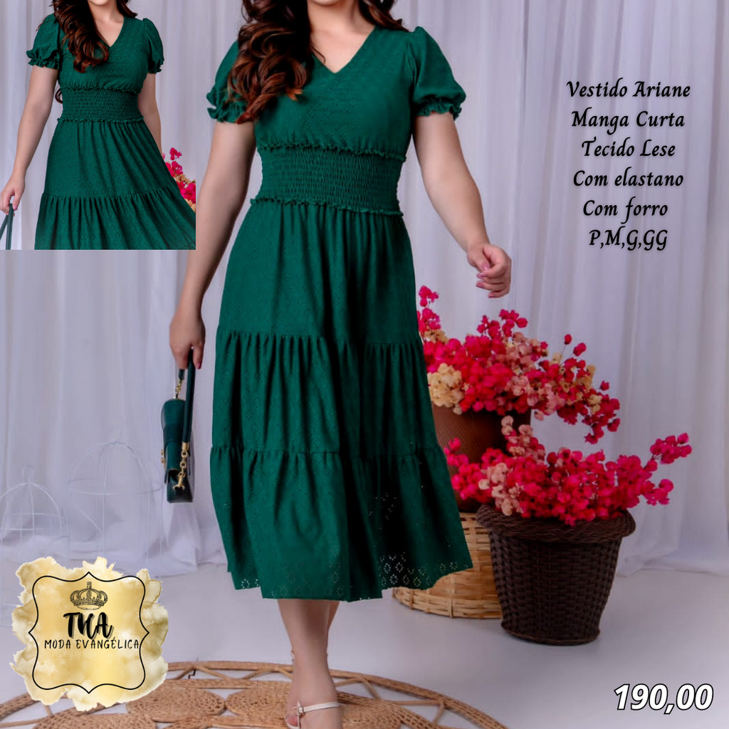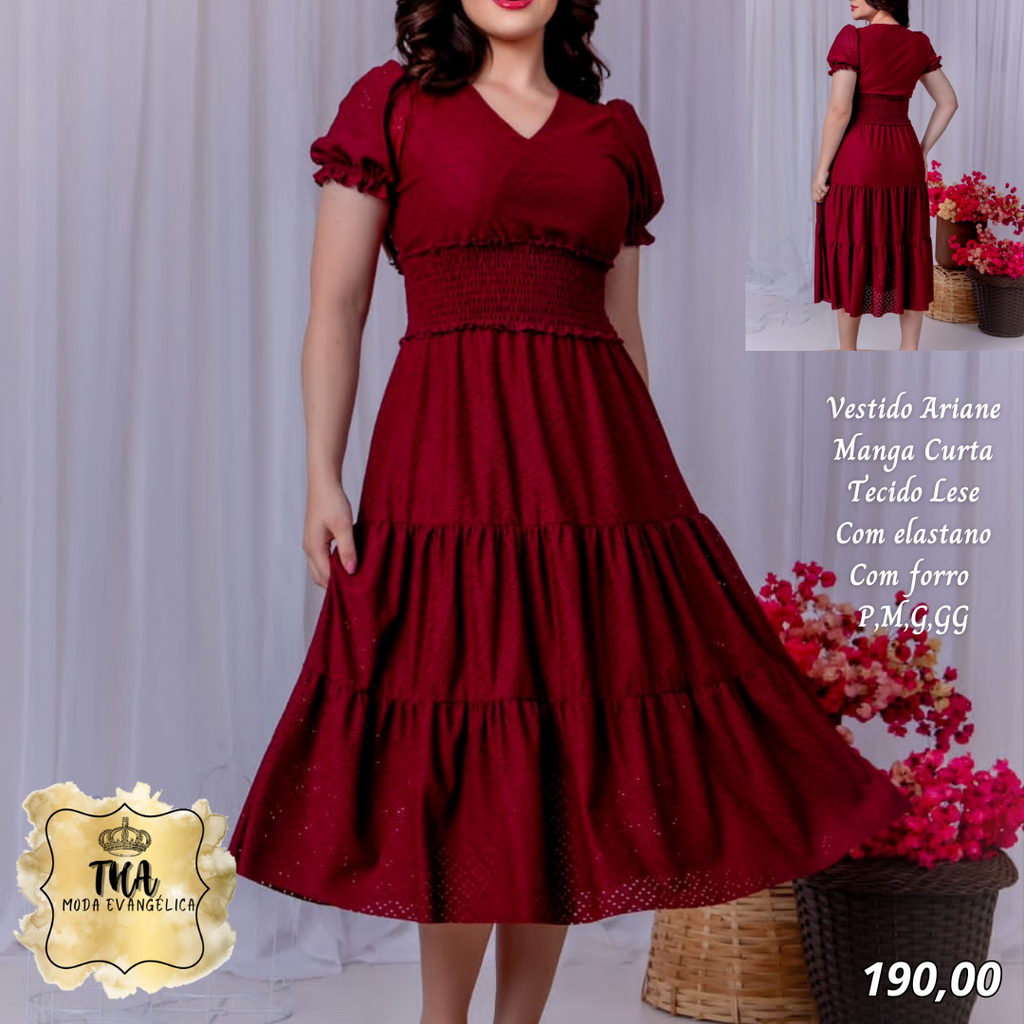 THA MODA EVANGÉLICA ✔Vestido Arine manga curta✔ Tecido malha lese✔ Com elastano✔ Tamanhos P, M, G, GG✈ Envio pelos correios