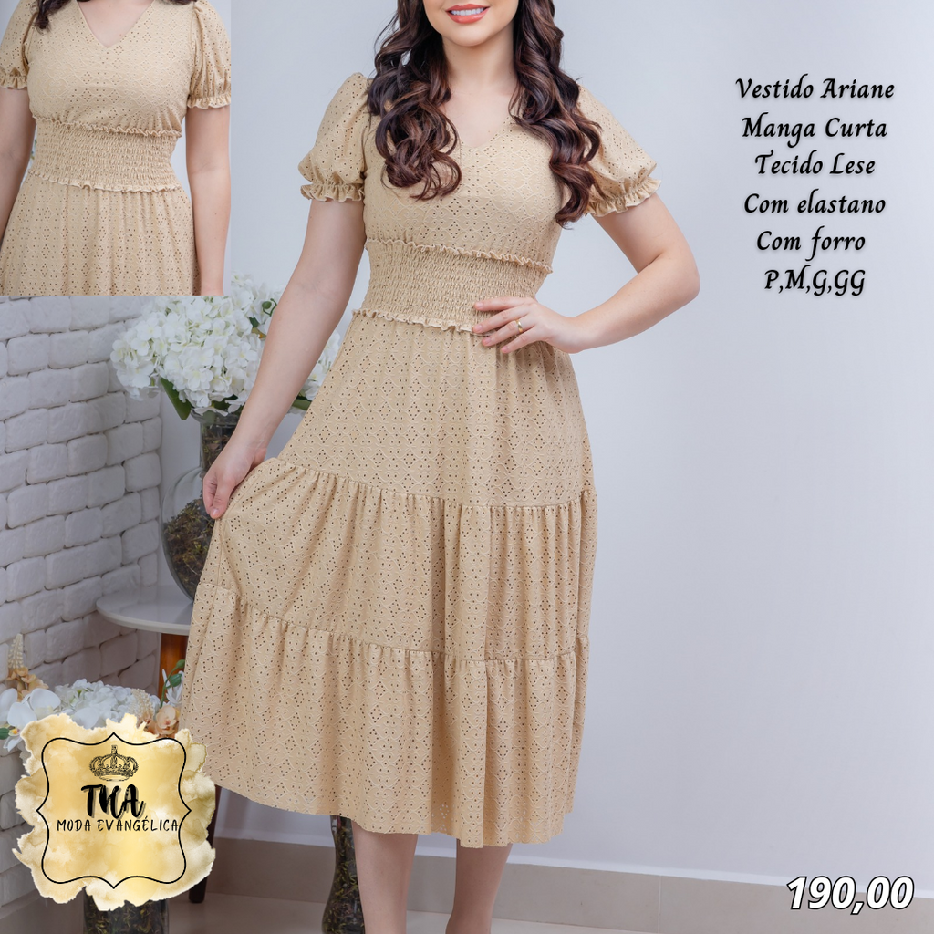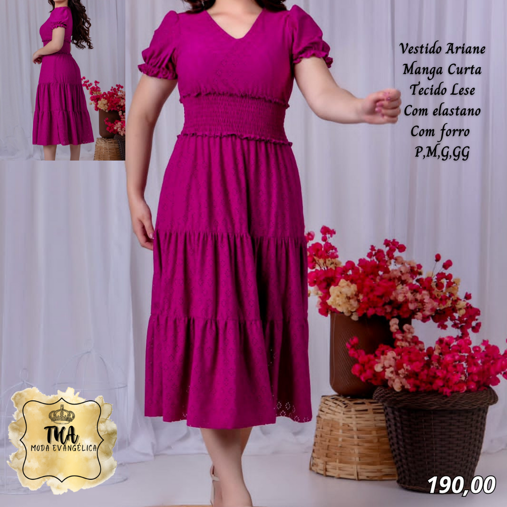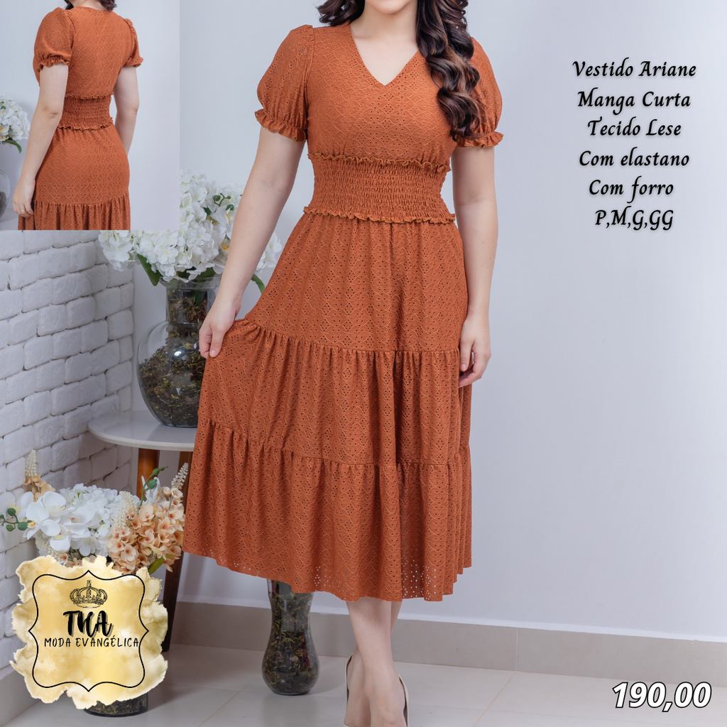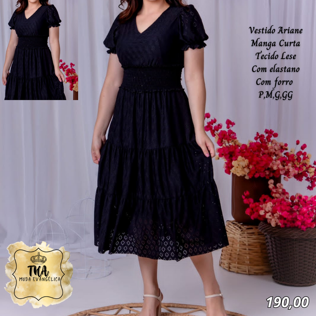 THA MODA EVANGÉLICA ✔Vestido Arine manga curta✔ Tecido malha lese✔ Com elastano✔ Tamanhos P, M, G, GG✈ Envio pelos correios