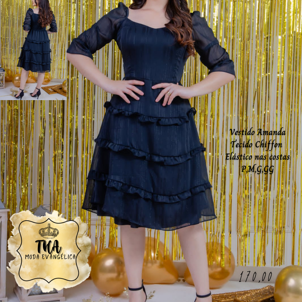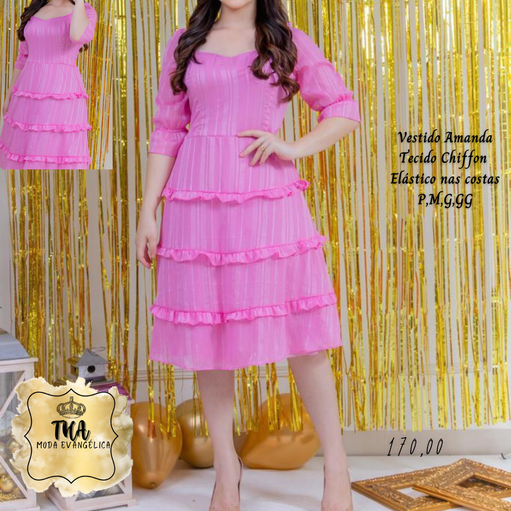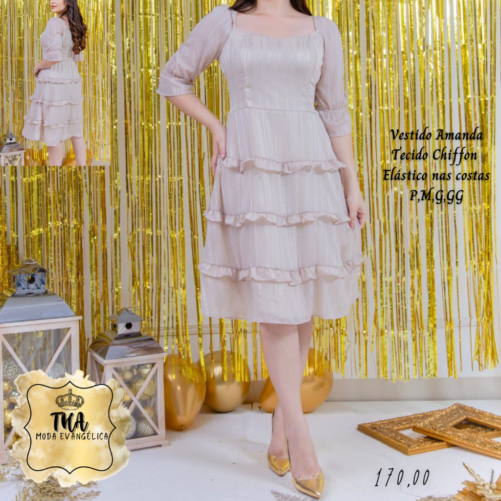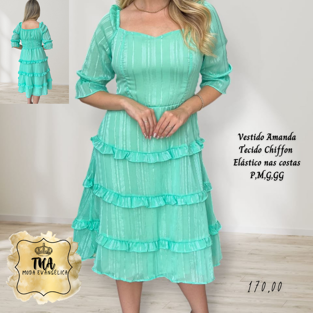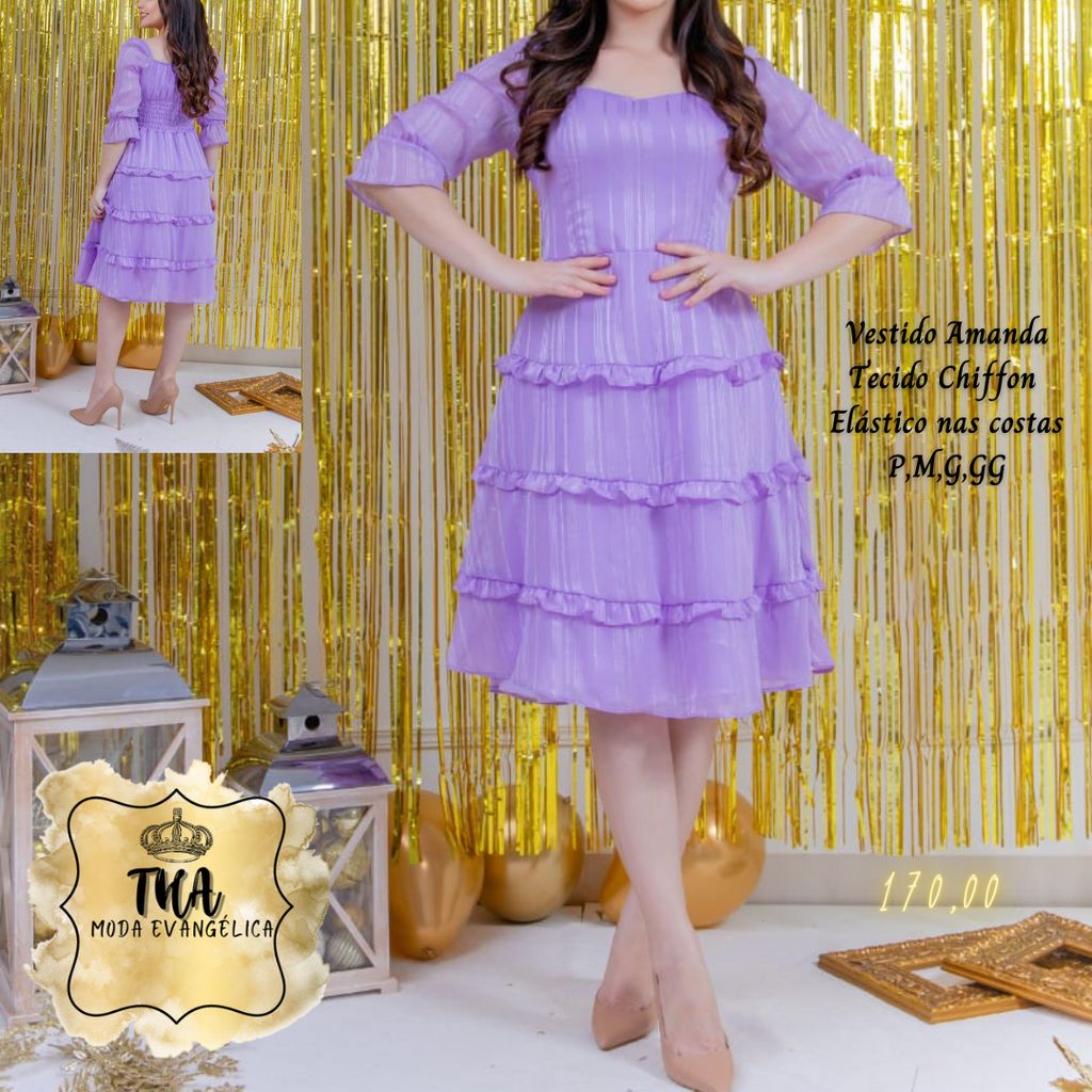 THA MODA EVANGÉLICA ✔Vestido Amanda✔ Tecido Chiffon✔ Com Elástico nas costas✔ Tamanhos P, M, G, GG✈ Envio pelos correios